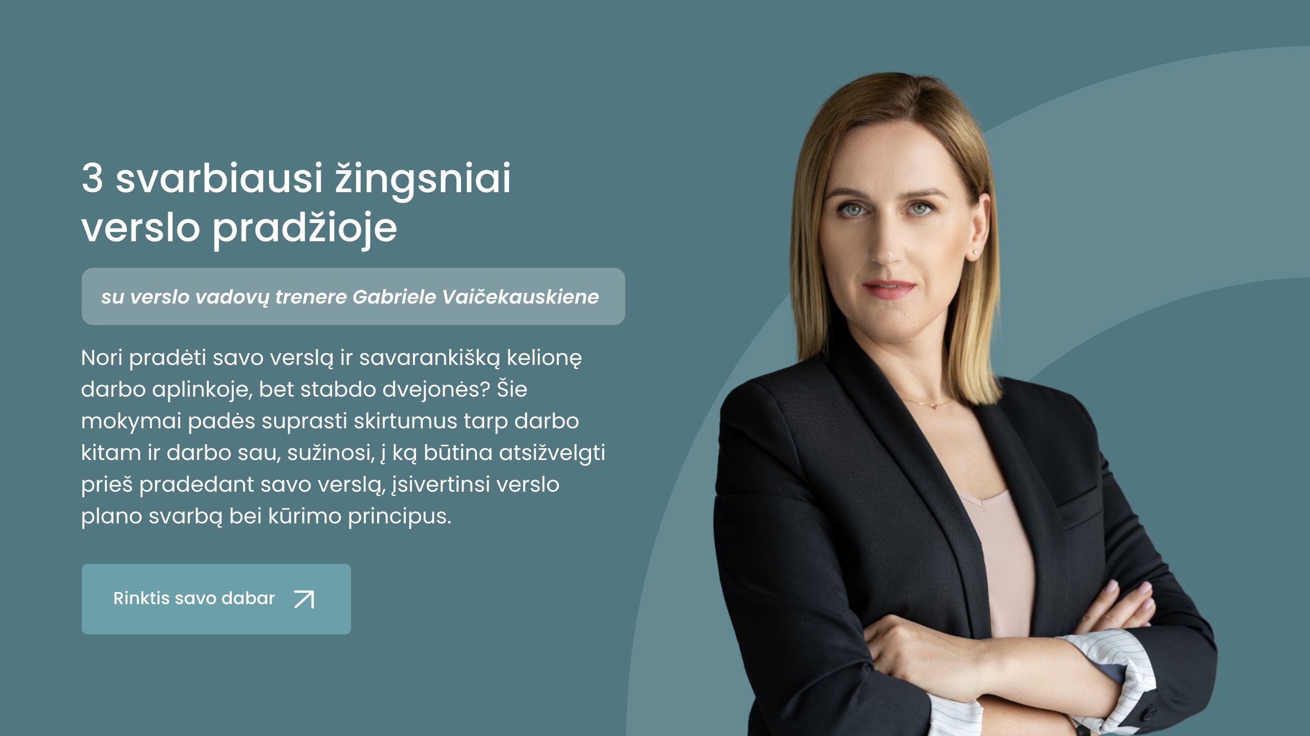 Jautiesi pasimetęs, nes nori pradėti savo verslą ir savarankišką kelionę darbo aplinkoje, bet stabdo dvejonės? Mokymų metu lektorė Gabrielė Vaičekauskienė įvardys svarbiausius aspektus, į kuriuos būtina atsižvelgti prieš pradedant savo verslą, verslininko savybes ir verslo plano svarbą bei kūrimo principus.